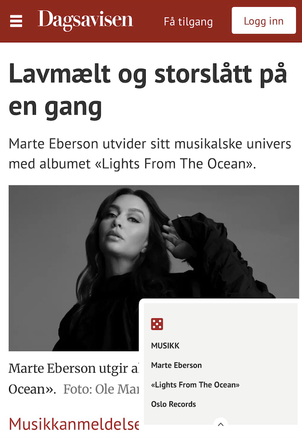 «Dette er ambisiøs og lekker pop» Dagens Næringsliv